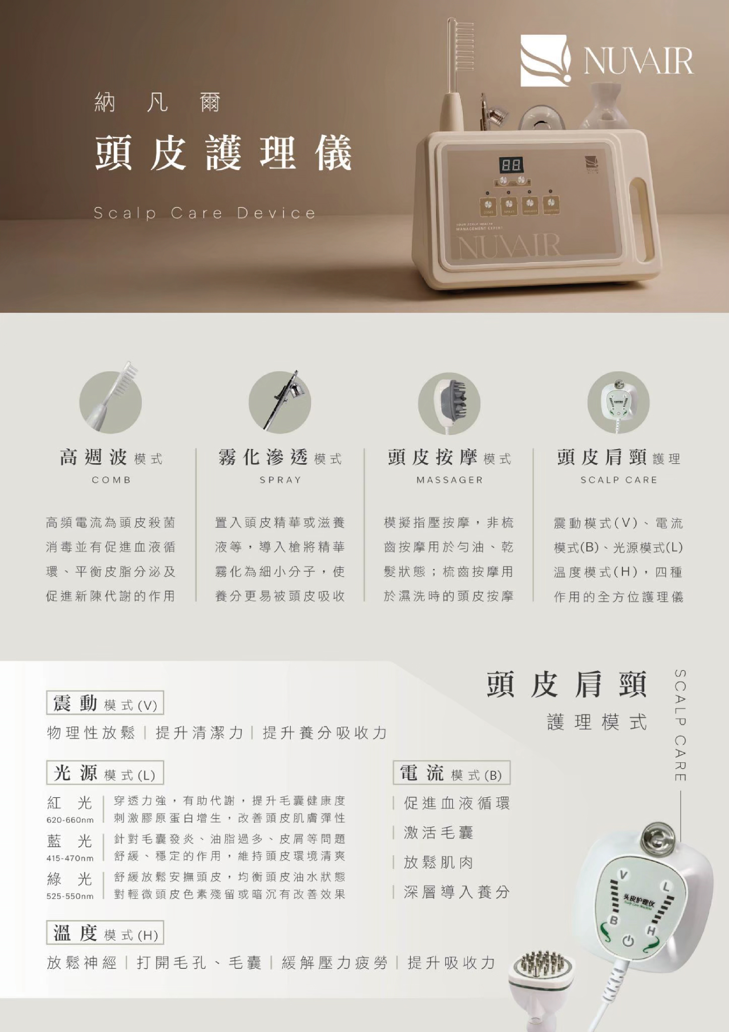 NUVAIR 四合一頭皮護理儀-打造高端頭皮療程|從設備升級開始
