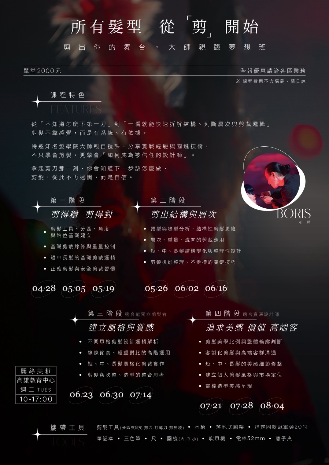 4/28 ✂️剪出你的夢想|明星夢想班|12 堂課讓你剪髮技能大躍進!🌟 重鎊邀請美髮名師-Boris 親授