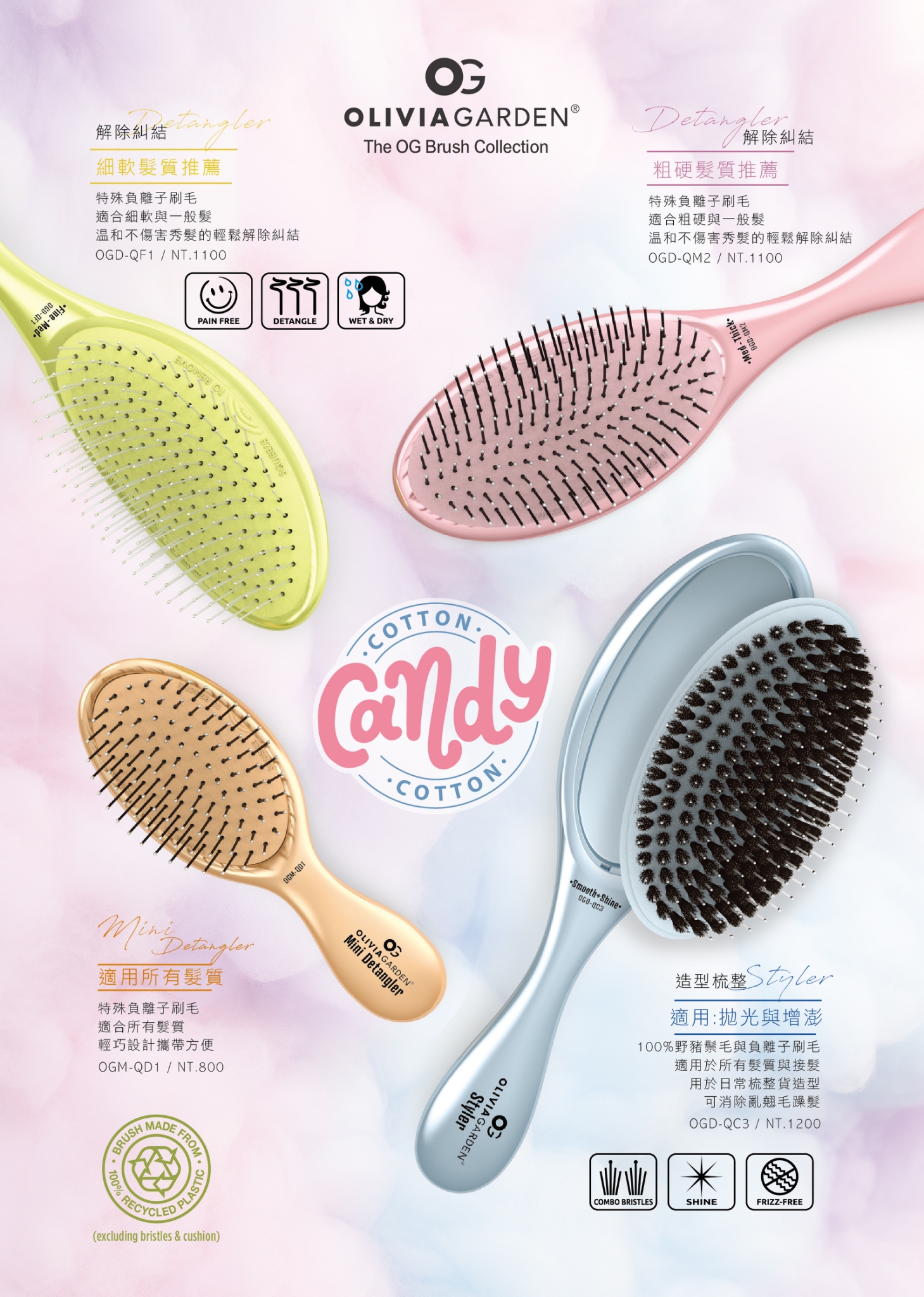 Cotton Candy Edition 系列以「不扯痛、不卡結、溫和又有效率」為核心,從解結梳到造型梳一應俱全。