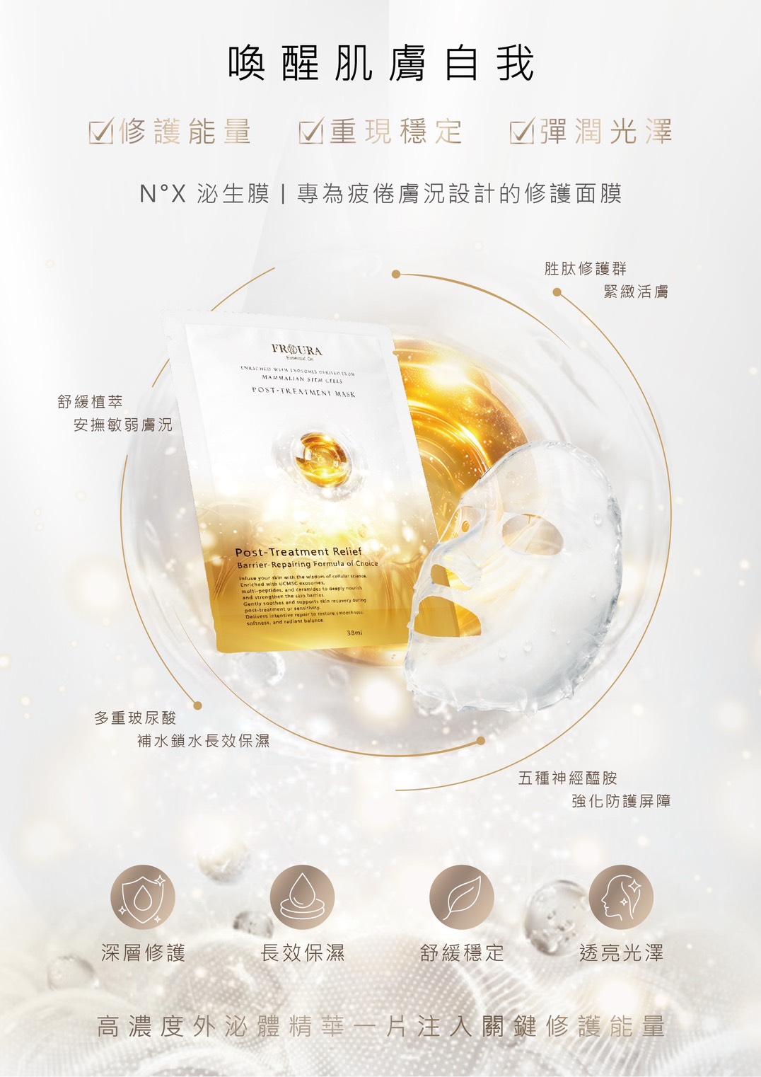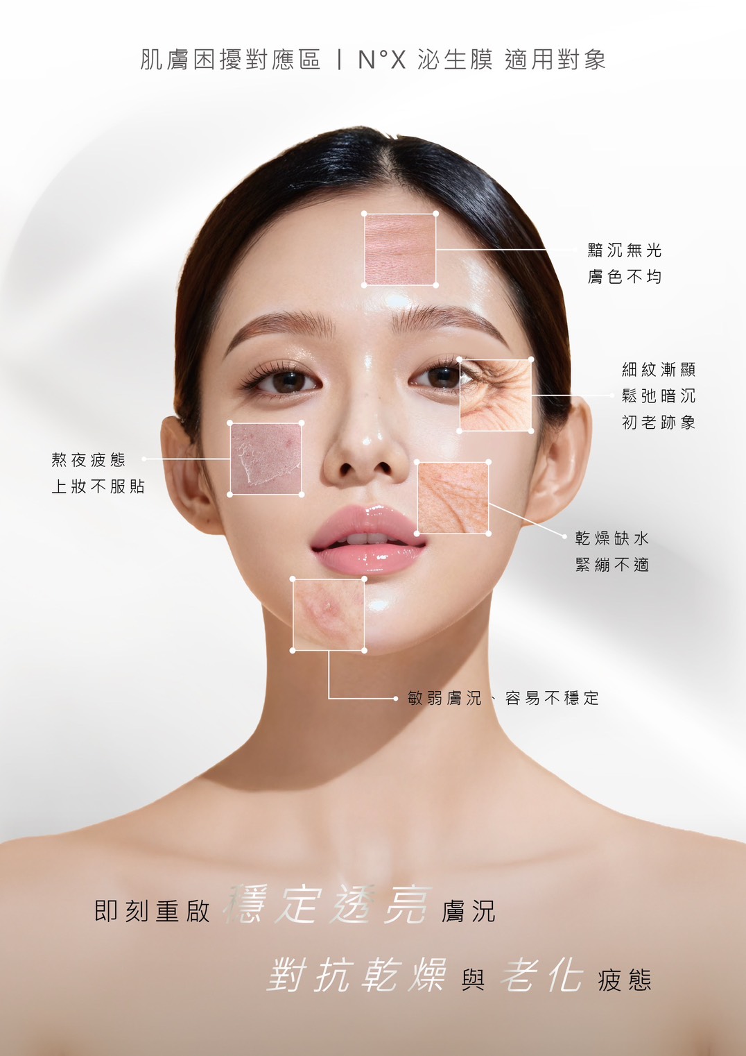 N°X外泌體修護面膜採用高濃度外泌體 × 多重胜肽修復科技,