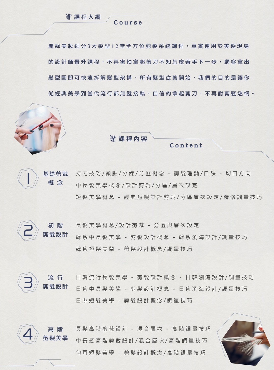 📌 內容重點:剪髮技巧 + 設計邏輯 + 沙龍常見髮型操作